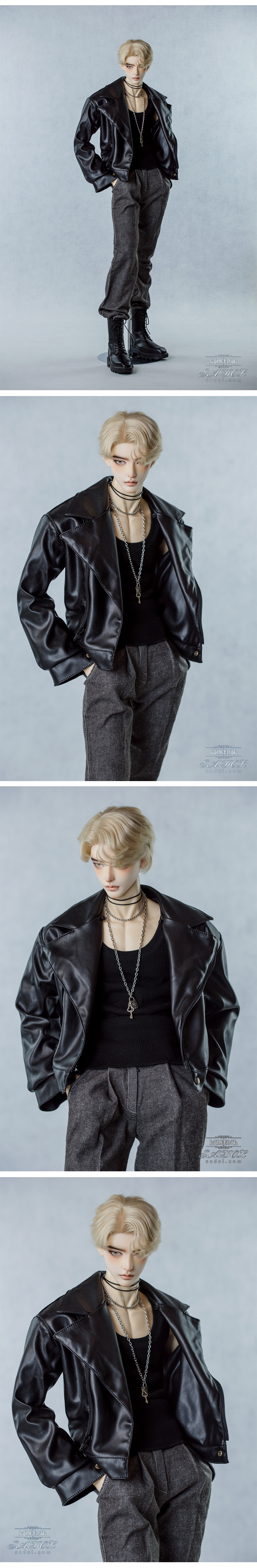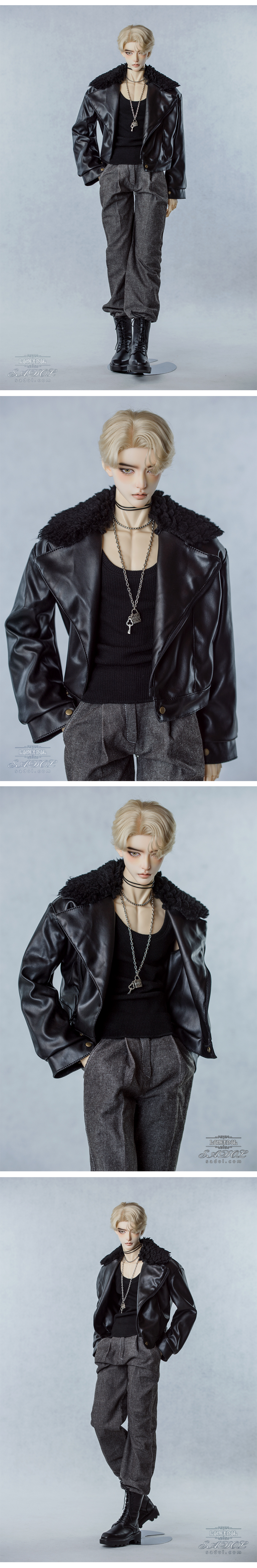 Neck choker & wing necklace + rider jacket + detachable fleece collar
