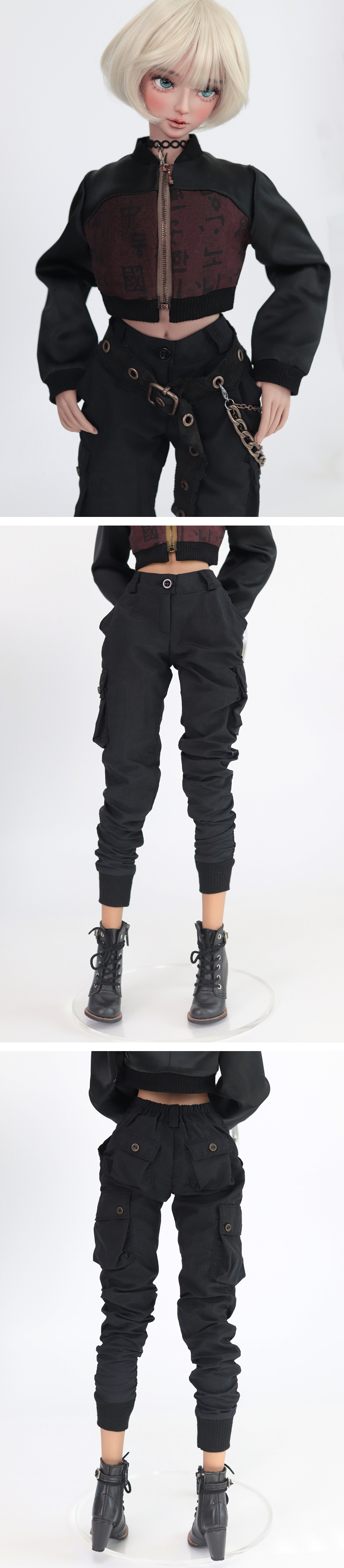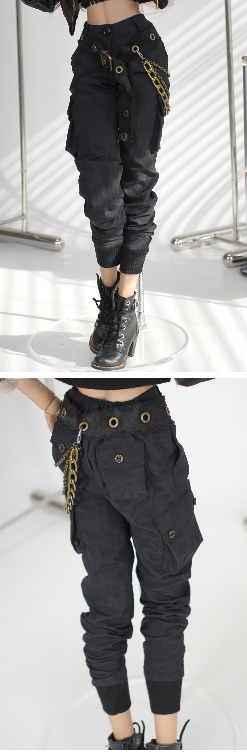 Crown neck choker + blouson (jacket)+ beaded top + cargo pants + chain belt